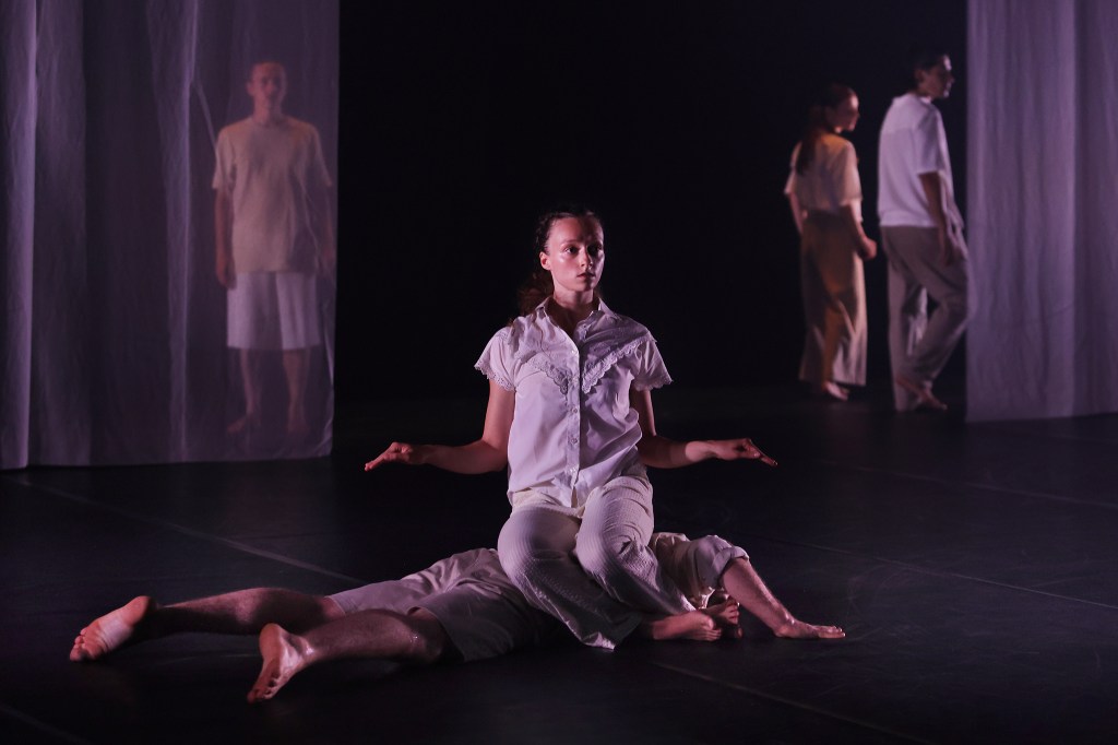 Photos du filage de la pièce CHOPIN par CHRISTINE HASSID PROJECT, chorégraphie Christine Hassid avec l’aide de BERTHA BERMUDEZ, présentée à BAYONNE le 29 août 2024. Danse contemporaine. Photographie de Stéphane Bellocq.